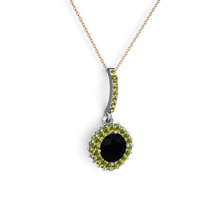 Siyah zirkon ve peridot 925 ayar gümüş kolye (40 cm rose altın rolo zincir)