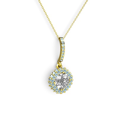 Swarovski ve akuamarin 14 ayar altın kolye (40 cm altın rolo zincir)