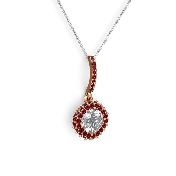 Swarovski ve garnet 18 ayar rose altın kolye (40 cm beyaz altın rolo zincir)