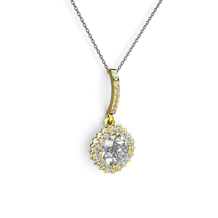 Swarovski ve pırlanta 8 ayar altın kolye (0.76 karat, 40 cm gümüş rolo zincir)