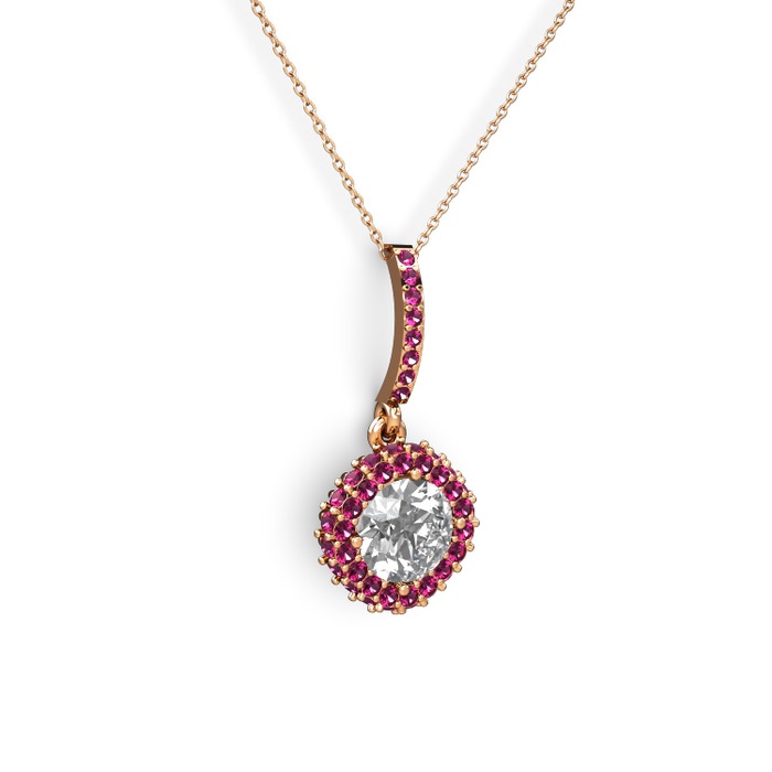 Swarovski ve rodolit garnet 18 ayar rose altın kolye (40 cm rose altın rolo zincir)