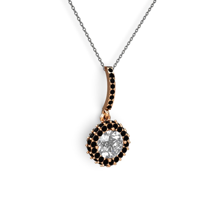 Swarovski ve siyah zirkon 14 ayar rose altın kolye (40 cm gümüş rolo zincir)