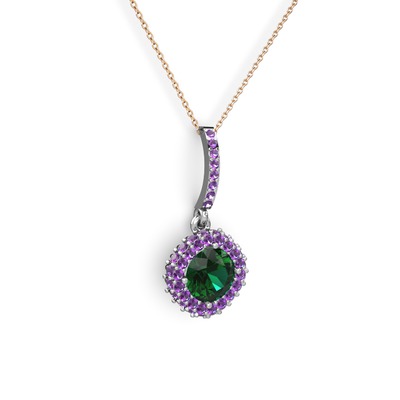 Yeşil kuvars ve ametist 925 ayar gümüş kolye (40 cm rose altın rolo zincir)