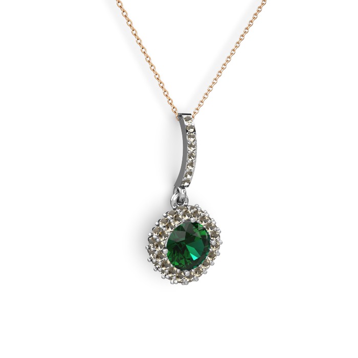 Yeşil kuvars ve dumanlı kuvars 8 ayar beyaz altın kolye (40 cm gümüş rolo zincir)