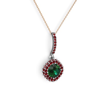 Yeşil kuvars ve garnet 14 ayar beyaz altın kolye (40 cm rose altın rolo zincir)