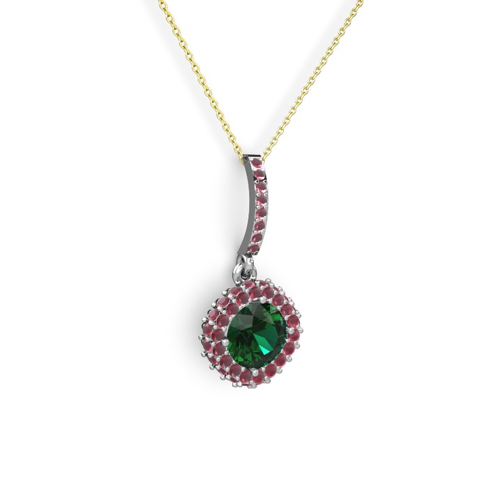 Yeşil kuvars ve kök yakut 14 ayar beyaz altın kolye (40 cm altın rolo zincir)
