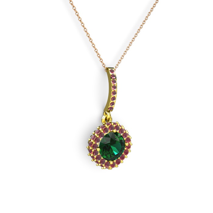 Yeşil kuvars ve kök yakut 8 ayar altın kolye (40 cm gümüş rolo zincir)