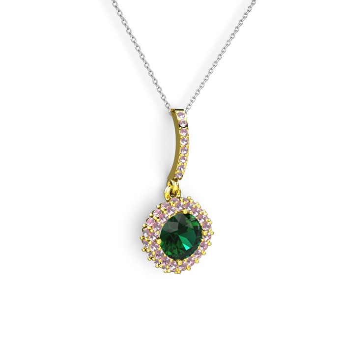 Yeşil kuvars ve pembe kuvars 18 ayar altın kolye (40 cm beyaz altın rolo zincir)