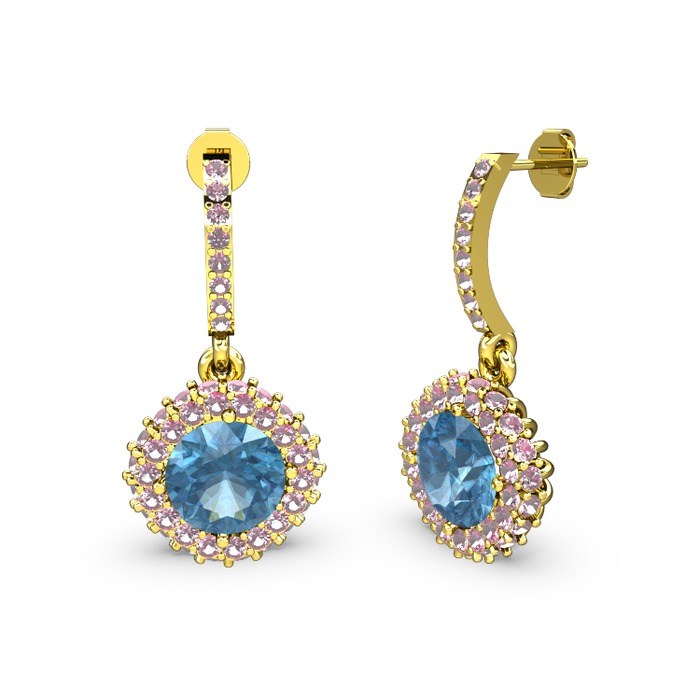 Akuamarin ve pembe kuvars 8 ayar altın küpe