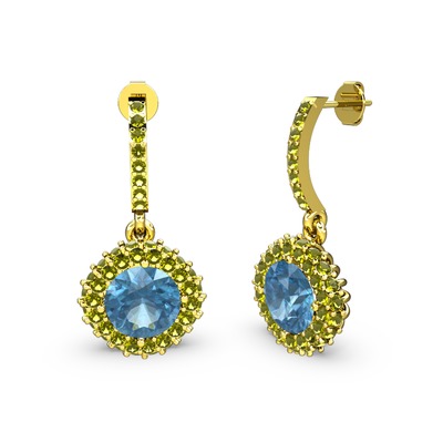 Akuamarin ve peridot 925 ayar altın kaplama gümüş küpe