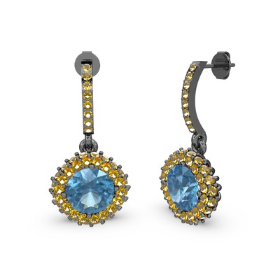 Akuamarin ve sitrin 925 ayar siyah rodyum kaplama gümüş küpe