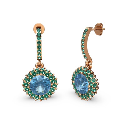 Akuamarin ve yeşil kuvars 14 ayar rose altın küpe