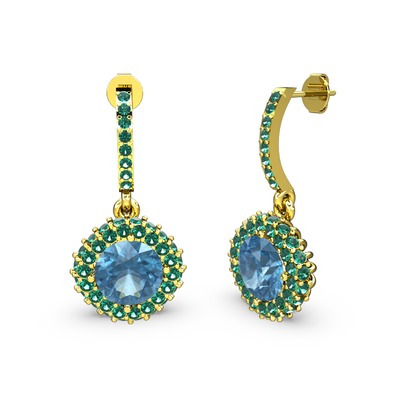 Akuamarin ve yeşil kuvars 18 ayar altın küpe