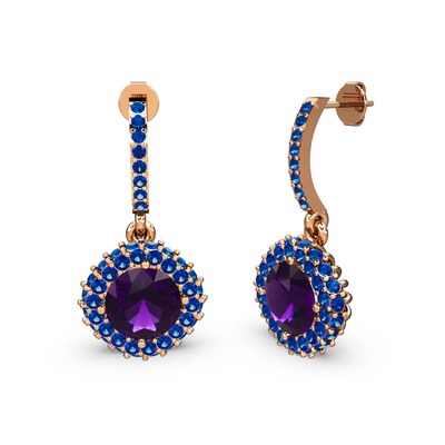 Ametist ve lab safir 18 ayar rose altın küpe