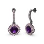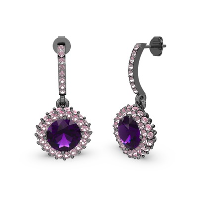 Ametist ve pembe kuvars 925 ayar siyah rodyum kaplama gümüş küpe