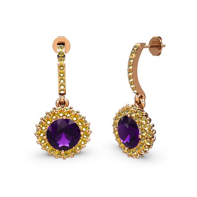 Ametist ve sitrin 925 ayar rose altın kaplama gümüş küpe