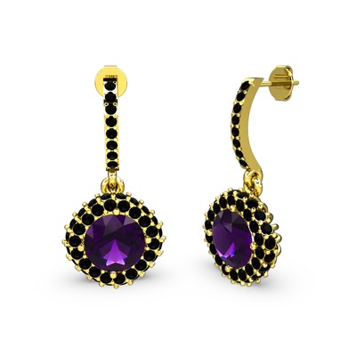 Ametist ve siyah zirkon 14 ayar altın küpe