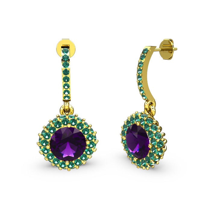 Ametist ve yeşil kuvars 14 ayar altın küpe