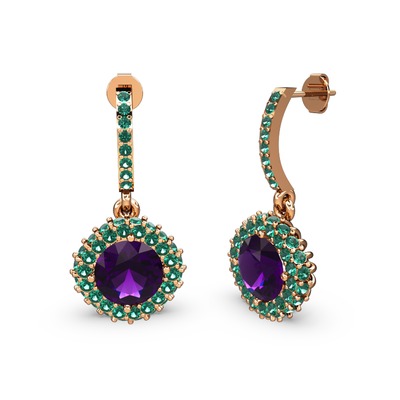 Ametist ve yeşil kuvars 18 ayar rose altın küpe