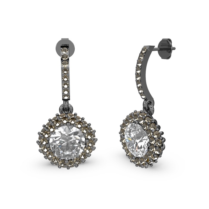 Beyaz zirkon ve dumanlı kuvars 925 ayar siyah rodyum kaplama gümüş küpe