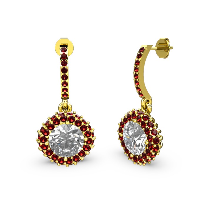 Beyaz zirkon ve garnet 14 ayar altın küpe