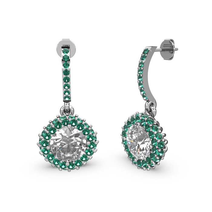 Beyaz zirkon ve yeşil kuvars 8 ayar beyaz altın küpe