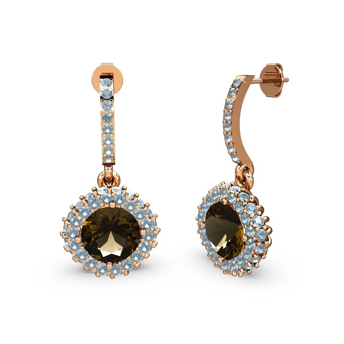 Dumanlı kuvars ve akuamarin 18 ayar rose altın küpe