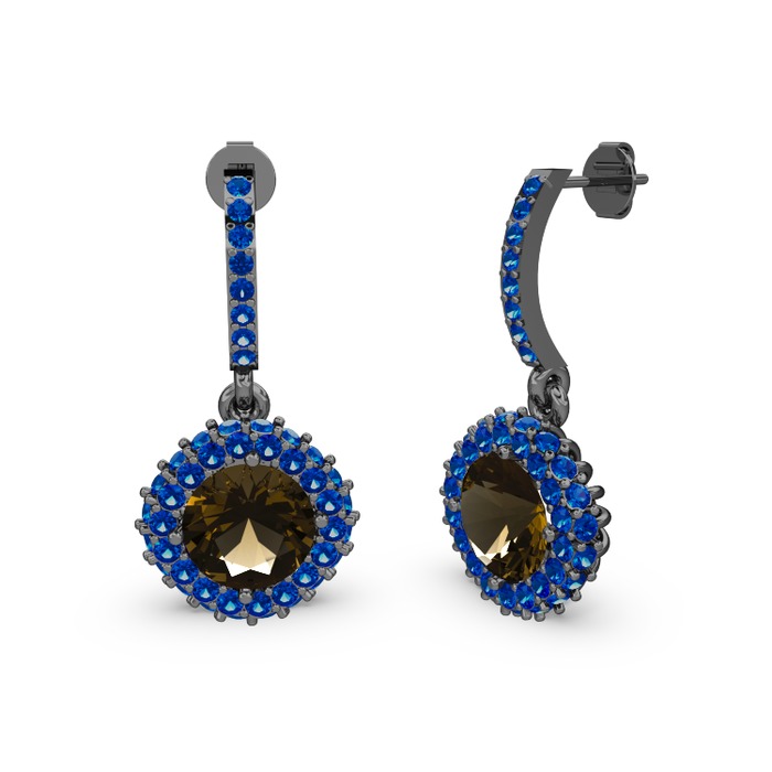 Dumanlı kuvars ve lab safir 925 ayar siyah rodyum kaplama gümüş küpe