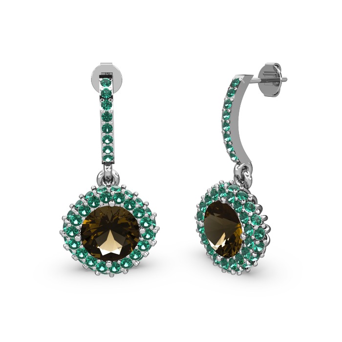 Dumanlı kuvars ve yeşil kuvars 18 ayar beyaz altın küpe