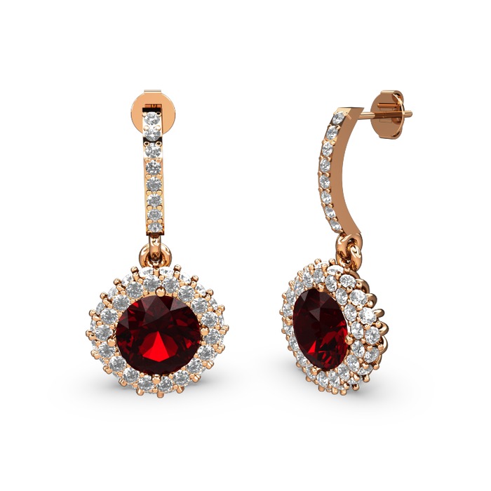 Garnet ve beyaz zirkon 18 ayar rose altın küpe