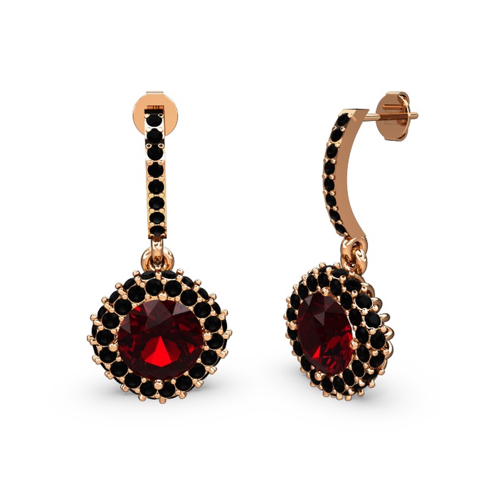 Garnet ve siyah zirkon 14 ayar rose altın küpe
