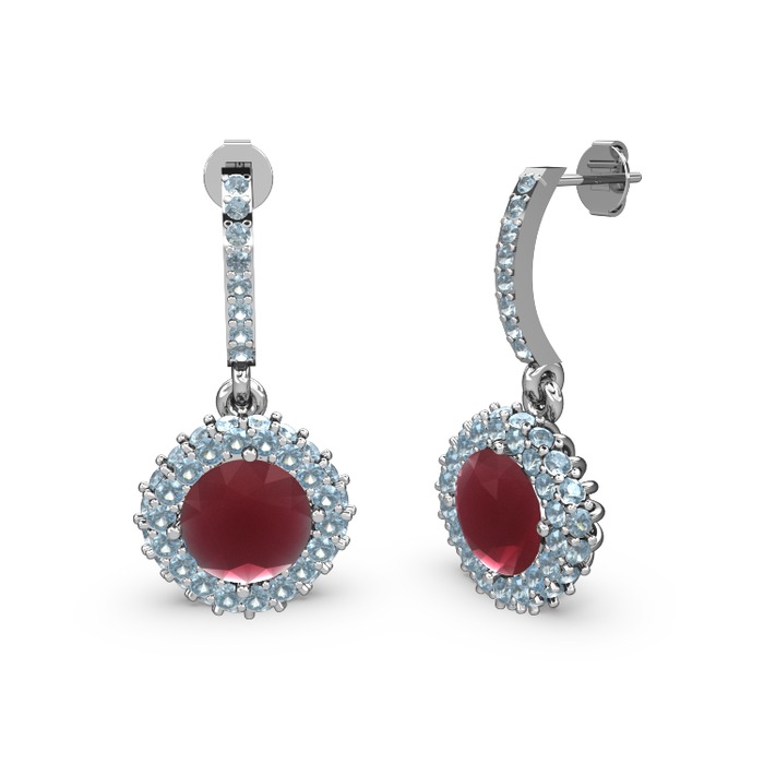 Kök yakut ve akuamarin 8 ayar beyaz altın küpe