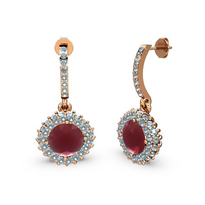 Kök yakut ve akuamarin 8 ayar rose altın küpe