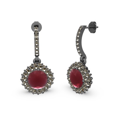 Kök yakut ve dumanlı kuvars 925 ayar siyah rodyum kaplama gümüş küpe