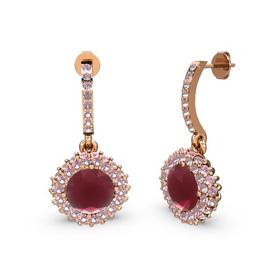 Kök yakut ve pembe kuvars 8 ayar rose altın küpe