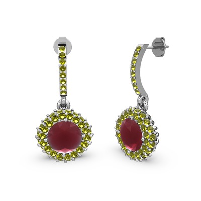 Kök yakut ve peridot 18 ayar beyaz altın küpe
