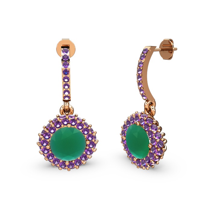Kök zümrüt ve ametist 18 ayar rose altın küpe
