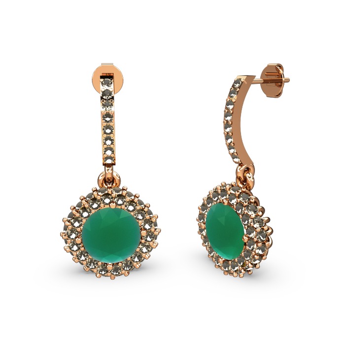 Kök zümrüt ve dumanlı kuvars 14 ayar rose altın küpe