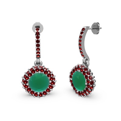 Kök zümrüt ve garnet 8 ayar beyaz altın küpe