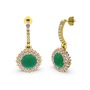 Kök zümrüt ve pembe kuvars 14 ayar altın küpe