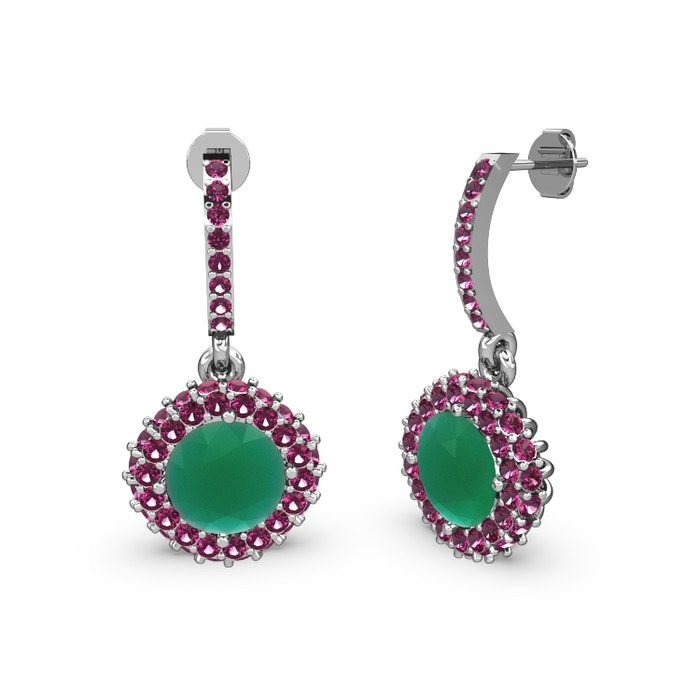 Kök zümrüt ve rodolit garnet 14 ayar beyaz altın küpe