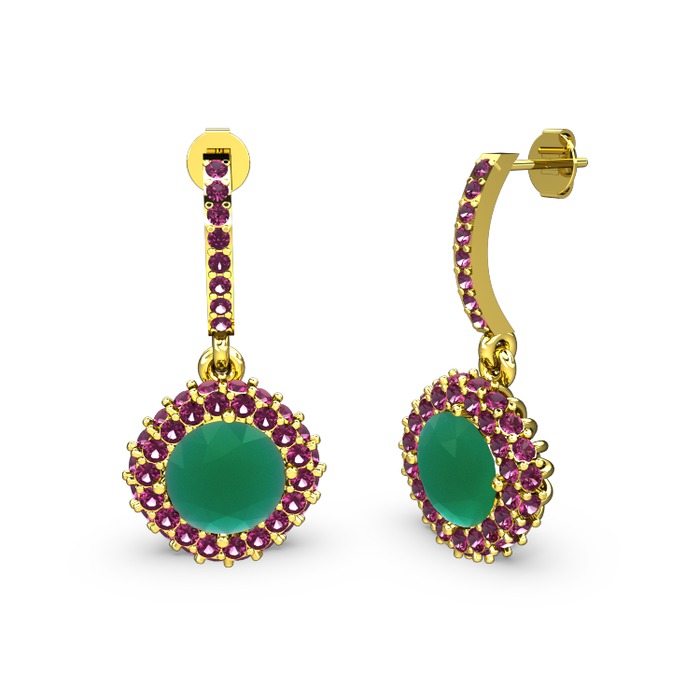 Kök zümrüt ve rodolit garnet 18 ayar altın küpe