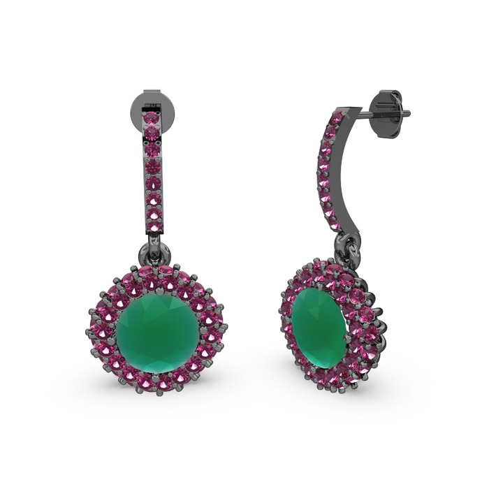 Kök zümrüt ve rodolit garnet 925 ayar siyah rodyum kaplama gümüş küpe
