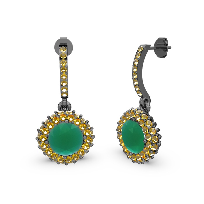Kök zümrüt ve sitrin 925 ayar siyah rodyum kaplama gümüş küpe