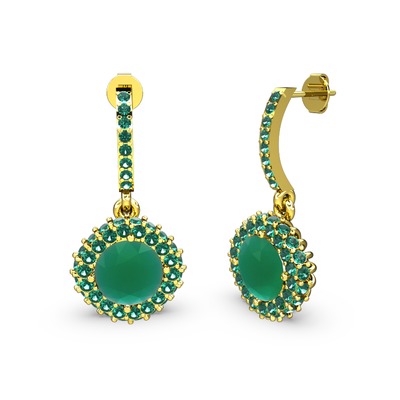 Kök zümrüt ve yeşil kuvars 925 ayar altın kaplama gümüş küpe