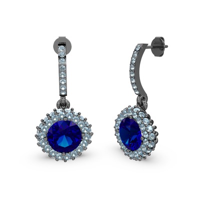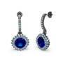 Lab safir ve akuamarin 925 ayar siyah rodyum kaplama gümüş küpe