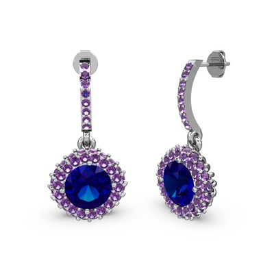 Lab safir ve ametist 14 ayar beyaz altın küpe