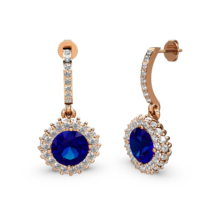 Lab safir ve beyaz zirkon 14 ayar rose altın küpe