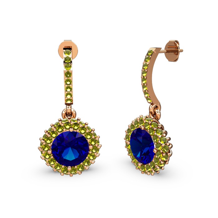 Lab safir ve peridot 925 ayar rose altın kaplama gümüş küpe