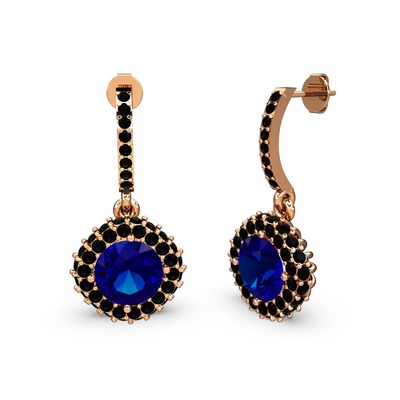 Lab safir ve siyah zirkon 14 ayar rose altın küpe